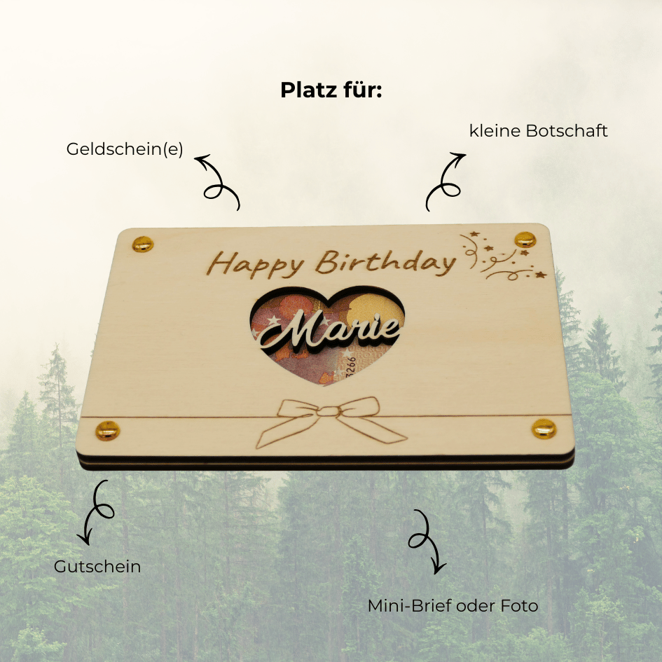 Personalisiertes Geldgeschenk aus Holz zum Geburtstag – Happy Birthday