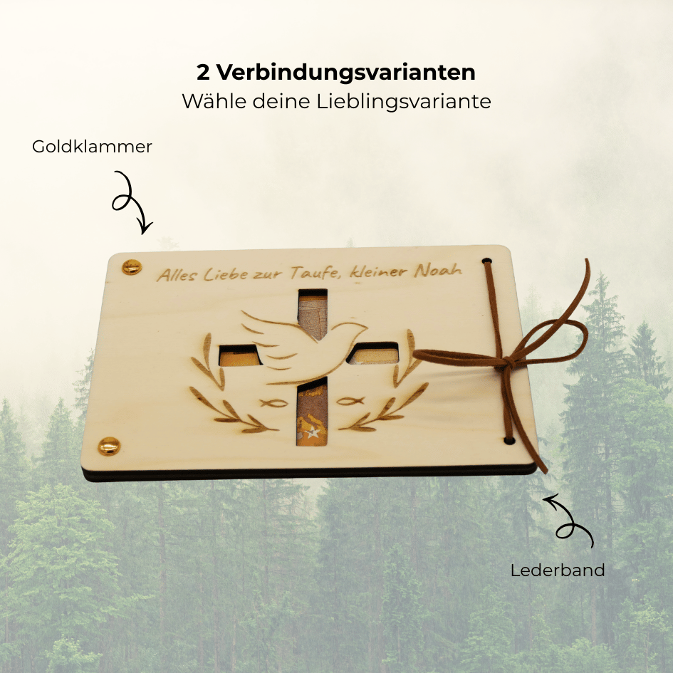 Personalisiertes Geldgeschenk aus Holz zur Taufe – Alles Liebe zur Taufe