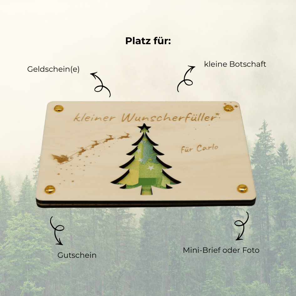 Personalisiertes Geldgeschenk Weihnachten – Holzkarte kleiner Wunscherfüller