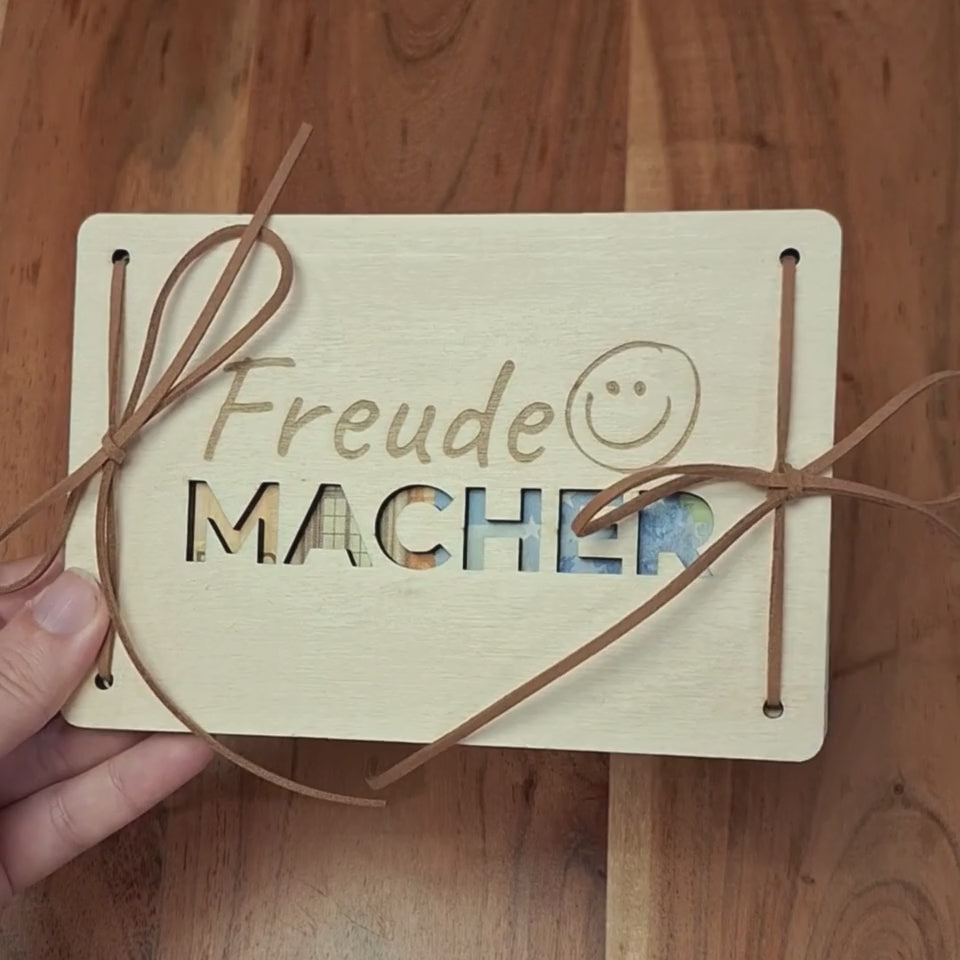 Holzkarte „Freude Macher“ – Perfekt für Geldgeschenke
